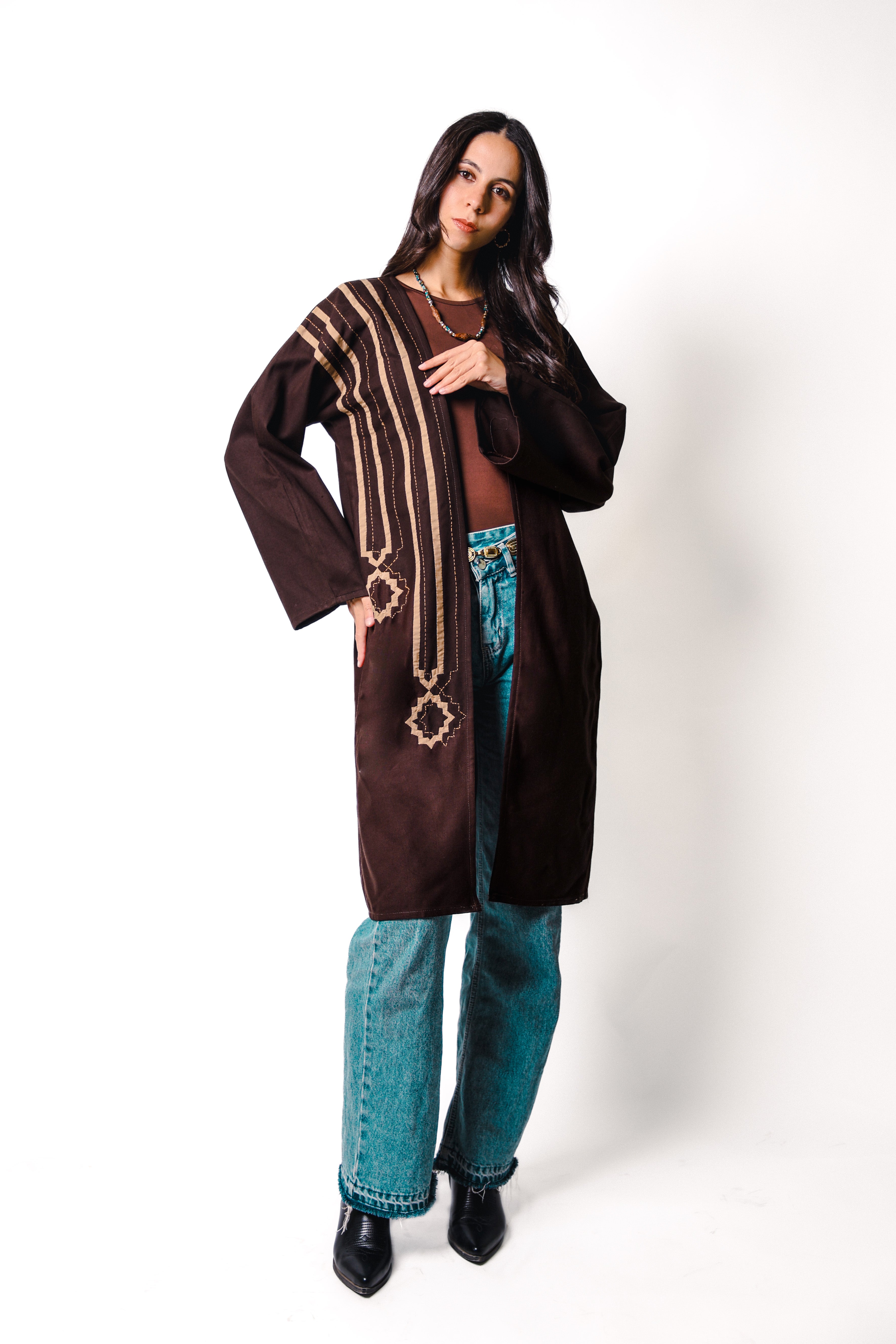 Inspired by the vertical lines of Cairo’s minarets, the A’midaKimono reflects strength and balance through clean architectural design.